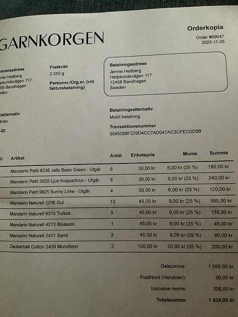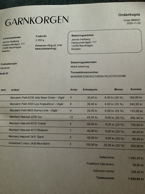 - Skein weight