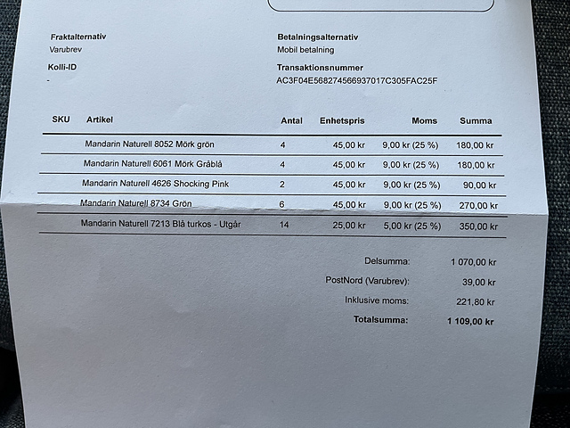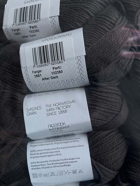 - Length per skein
